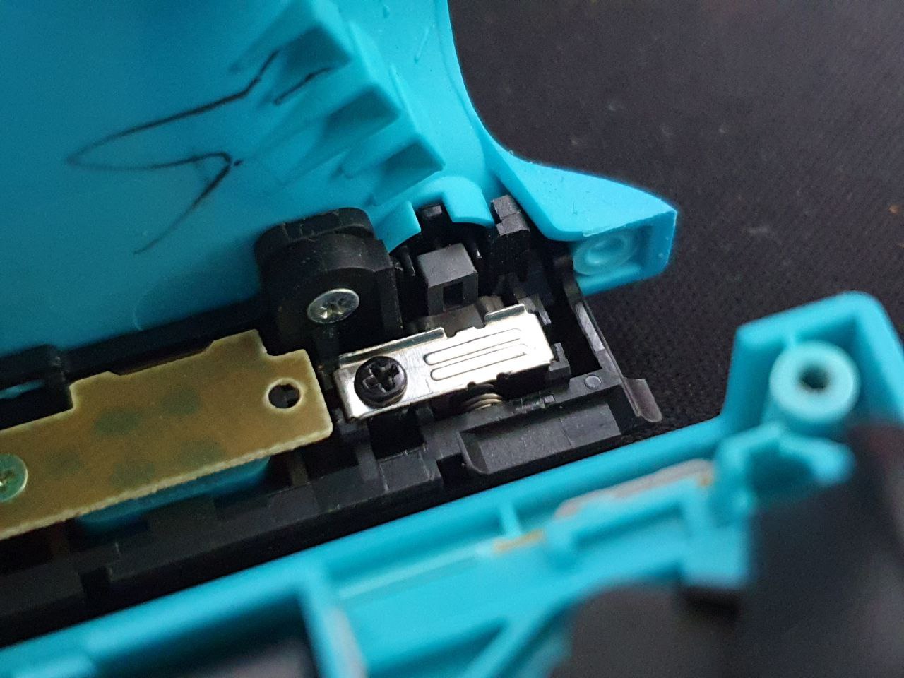 왼쪽이 원래 조이콘에 있던 걸쇠. 오른쪽은 구입한 금속 재질 걸쇠.
