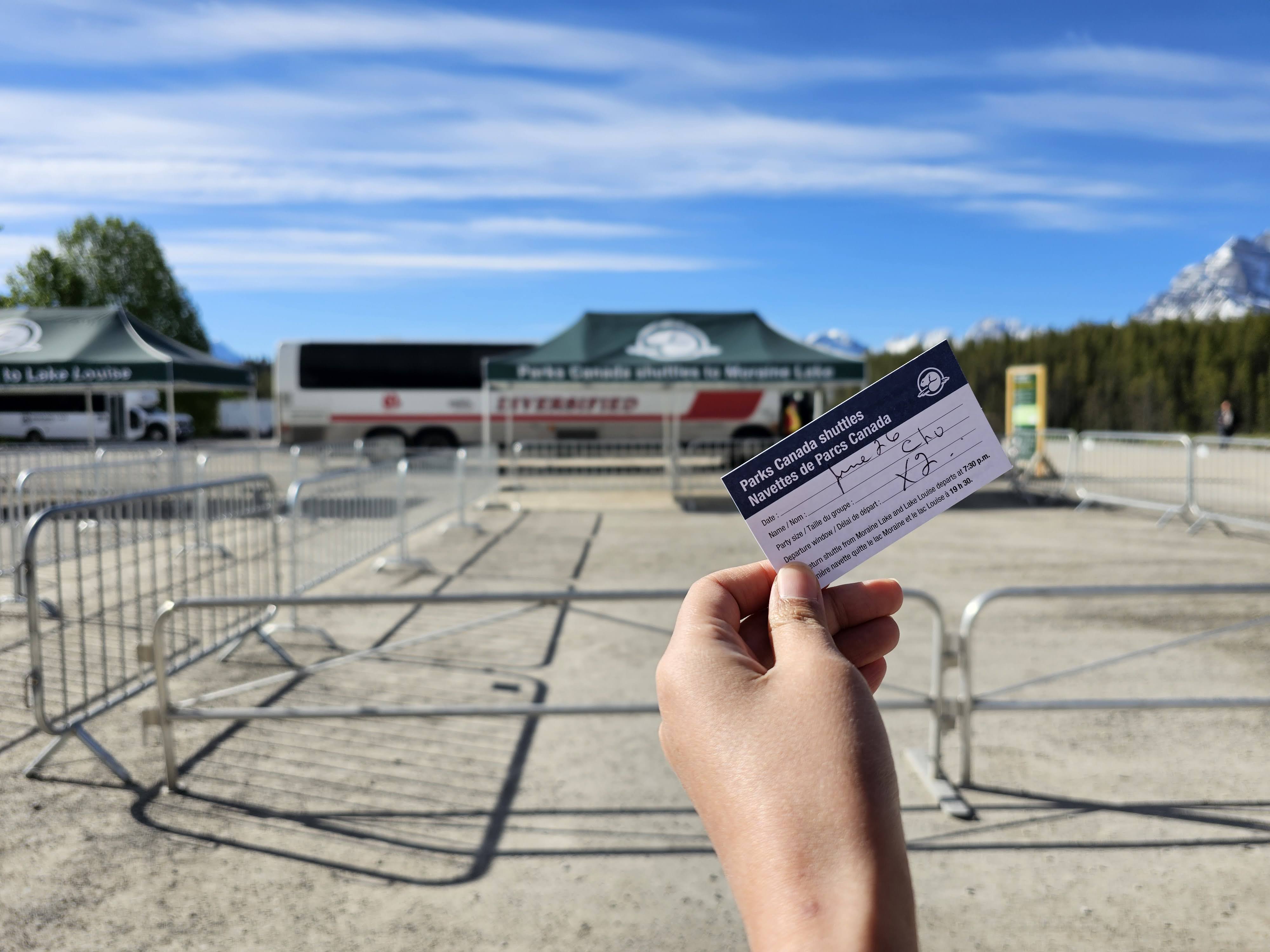 예약한 거 보여주고 표 받고 모레인 호수로 출발
