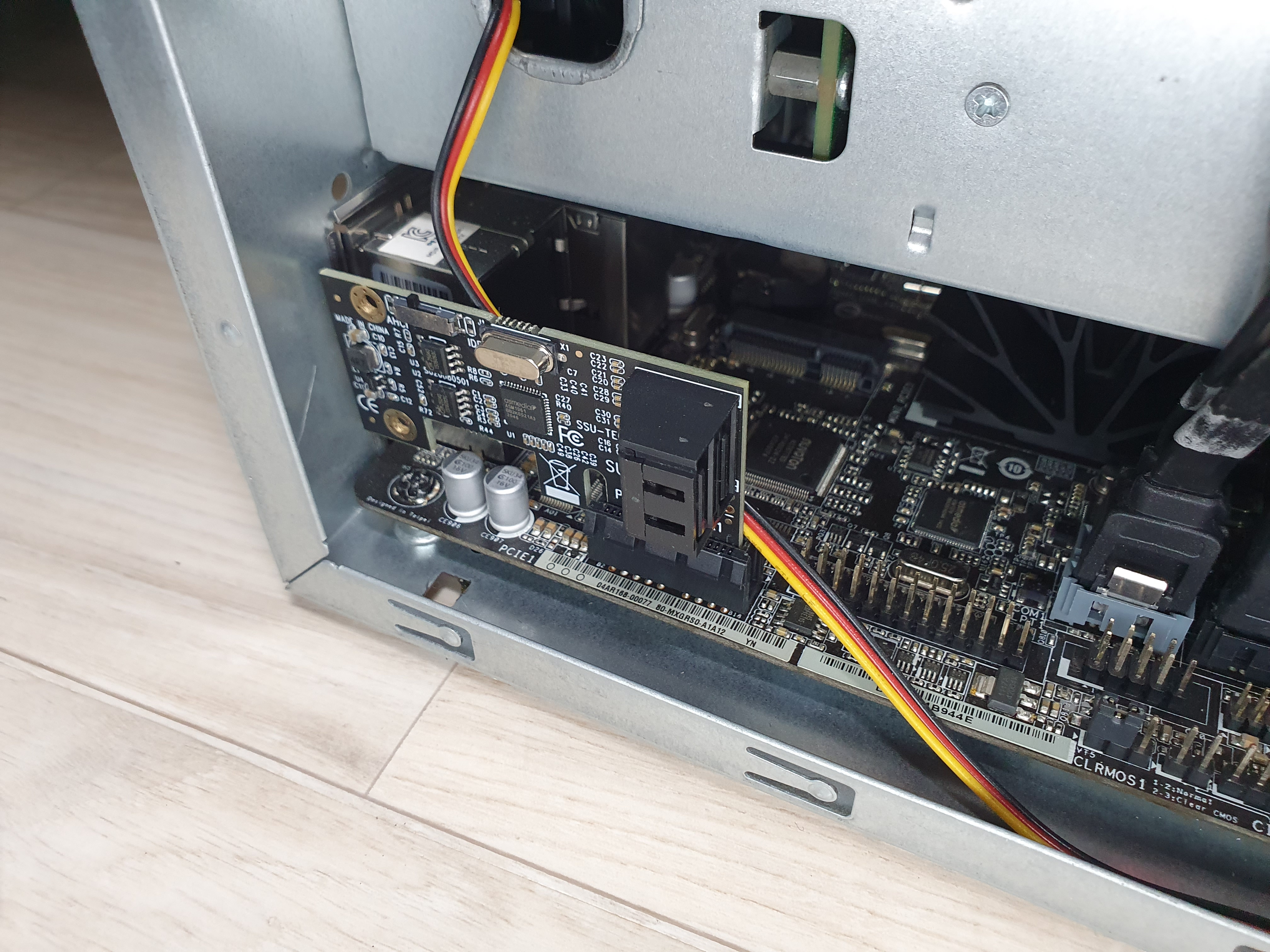 OS용 SSD를 설치하느라 메인보드에 있는 SATA포트 네 개를 다 써버려서, 3.5베이 하나를 쓸 수 없어서 PCIE 카드로 SATA 포트를 확보 했다. 이것도 알리에서 샀고, 테스트를 해야 해서 타오나스를 샀을 때 설치 되어 있던 MSATA SSD를 연결 했다.