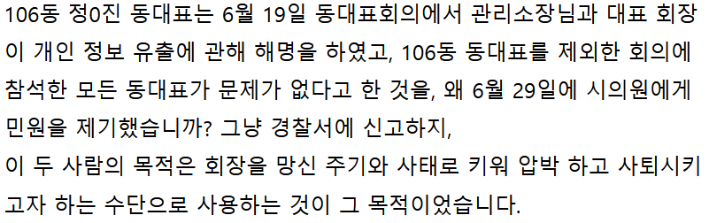 재반박이라면서 입주자 대표 회장이 다시 글을 올렸는데 거짓말이 줄줄 흐른다.