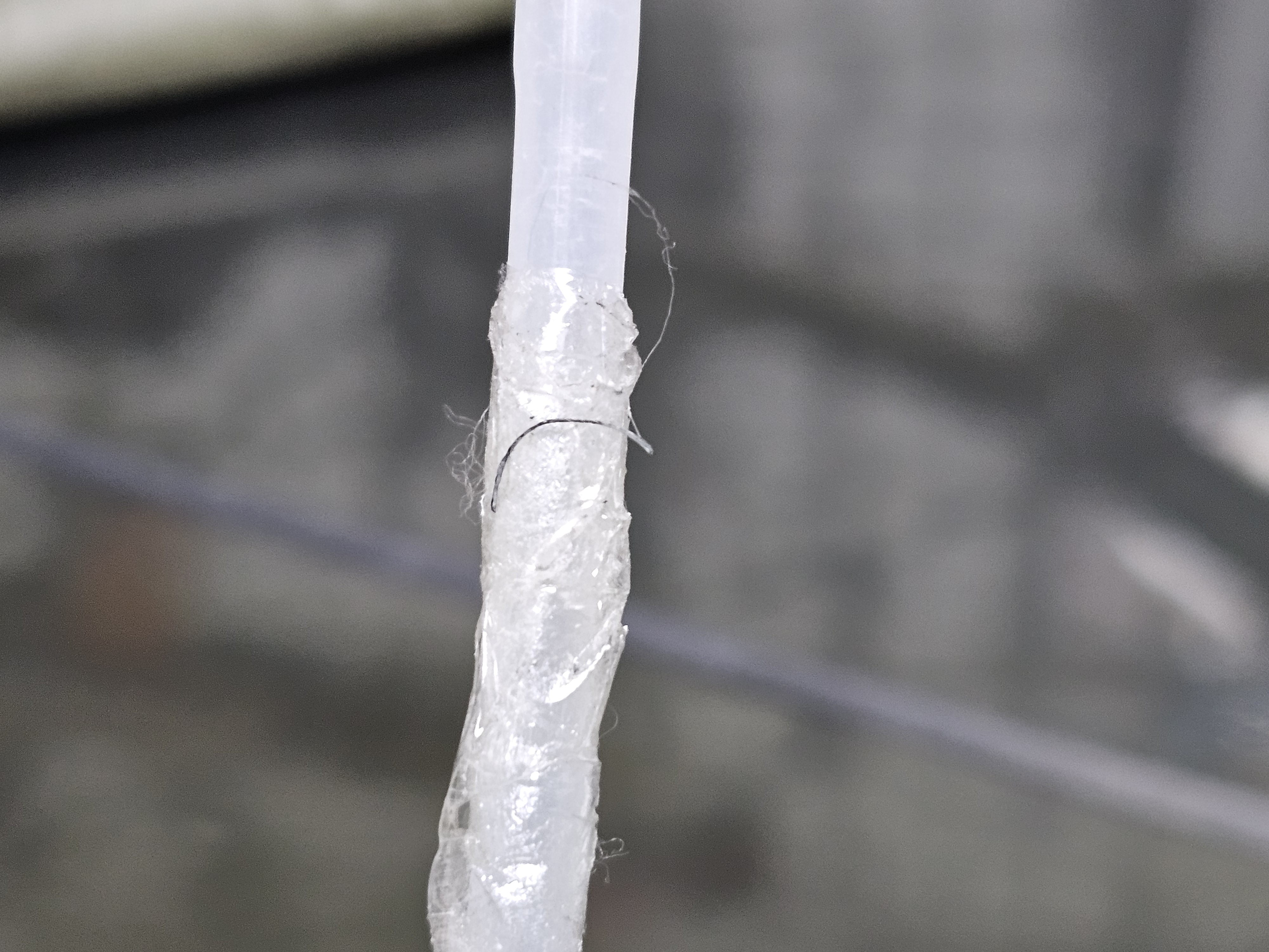 튜브 밸브 구멍으로 빠지겠지 하고 돌리고 흔들고 했는데 안 빠짐. 안 되겠다 싶어서 빨대에 테이프 접착면을 반대로 해서 돌돌 감고 튜브 밸브에 넣고 돌리기로 함.