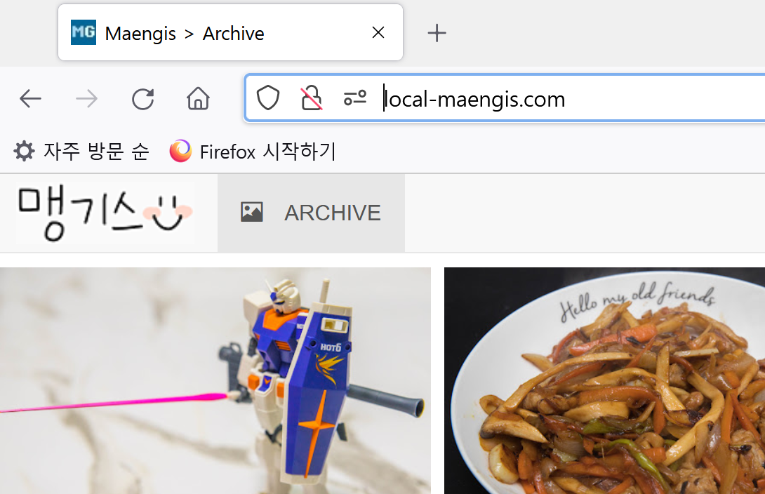 로컬에서 접근시 위에서 고정 IP로 지정한 192.168.0.31을 쓸 수도 있지만, 편의상 hosts 파일을 수정해서 도메인을 지정해주었다.
