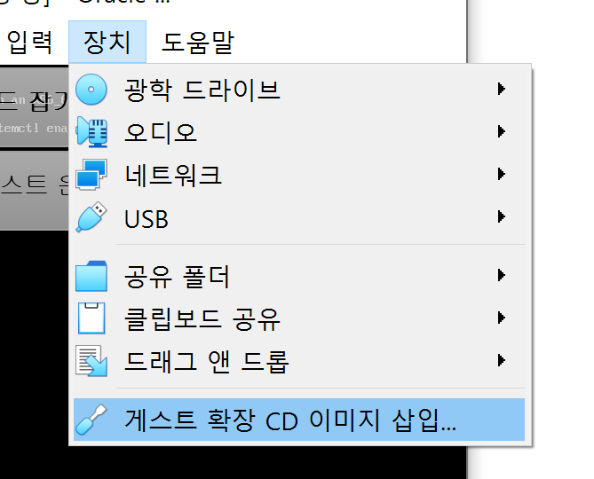 장치 > 게스트 확장 CD 이미지 삽입...이 되어 있다는 가정하에