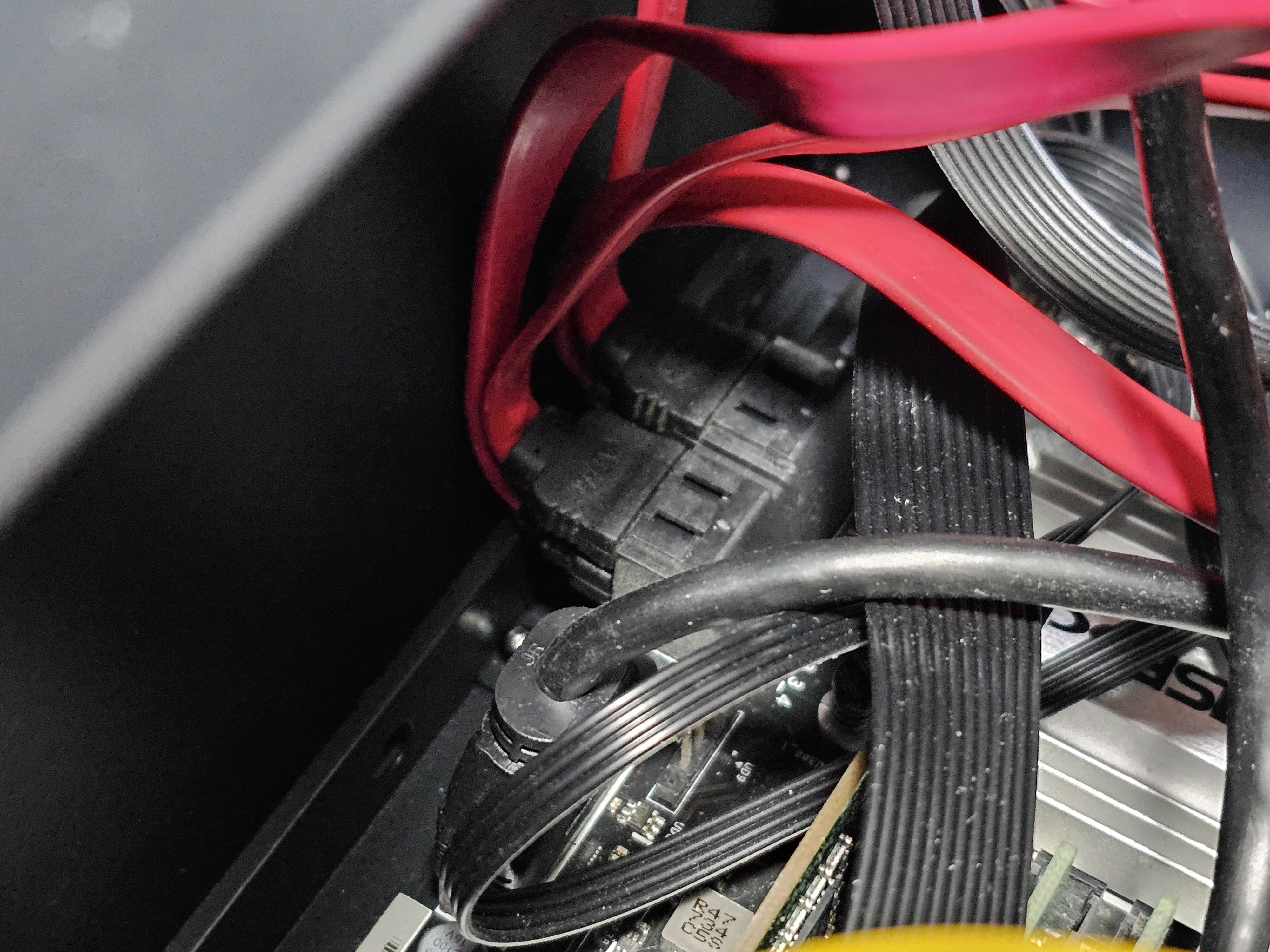 기존 데스크탑을 서버로 바꾸면서 케이스를 새로 샀는데, 부피가 작은 걸 찾다보니 SATA 커넥터쪽에 공간 여유가 없었다.