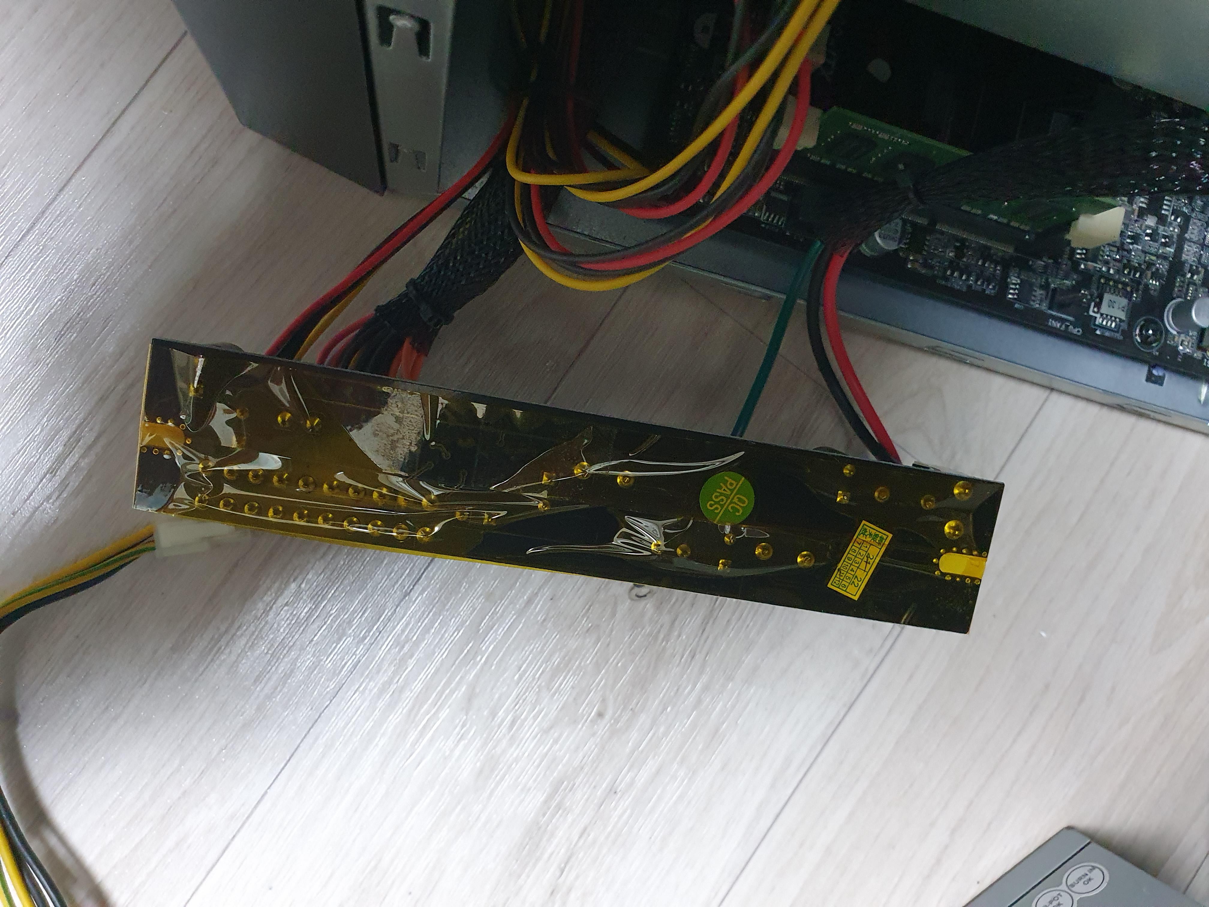 테스터기로 찍어보니 12v는 10v가 나오고 5v는 2.5v가 나왔다. 결론은 파워서플라이 사망.