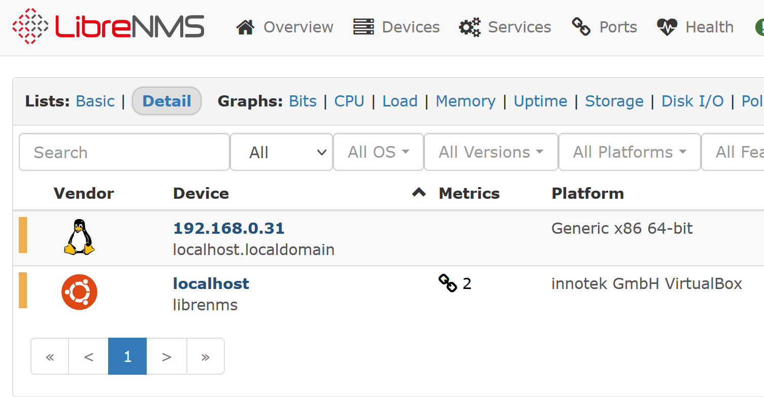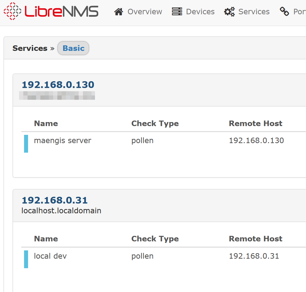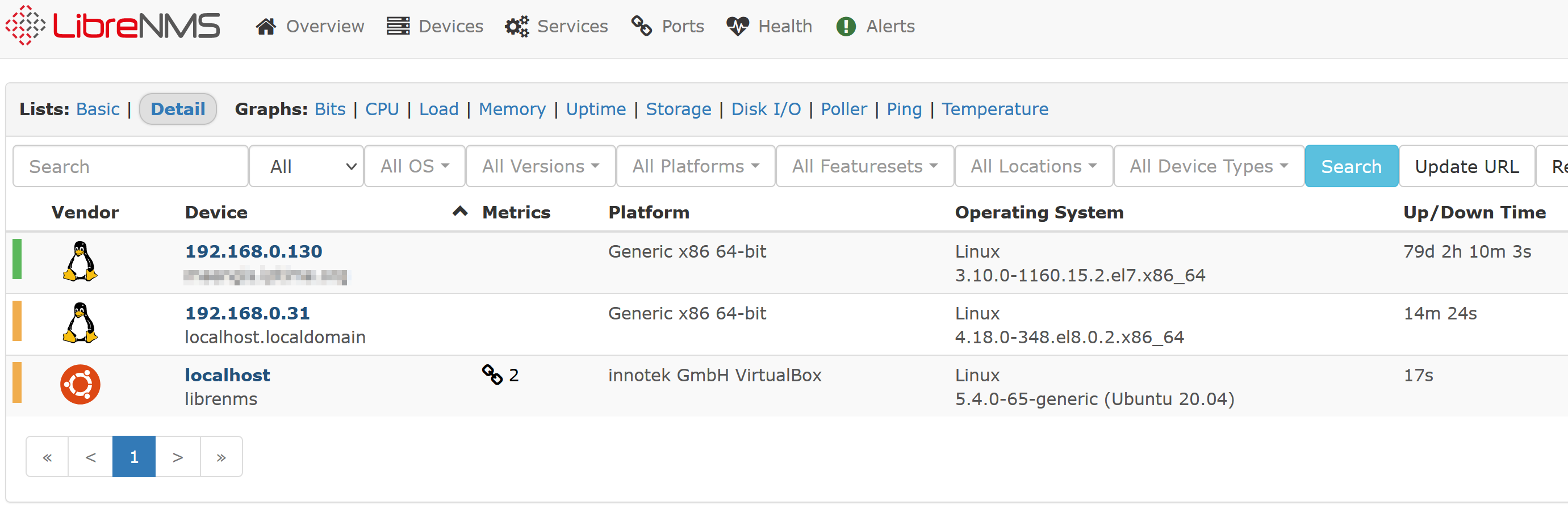 여튼 장비를 추가 해야 되는데, 운영 되고 있는 서버에 해보기에는 방화벽 열고 이러는 게 귀찮아서 로컬 개발 서버를 쓰기로 했다. (* LibreNMS는 127.0.0.1이고 로컬 개발 서버는 192.168.0.31을 쓰게 해놨다.)