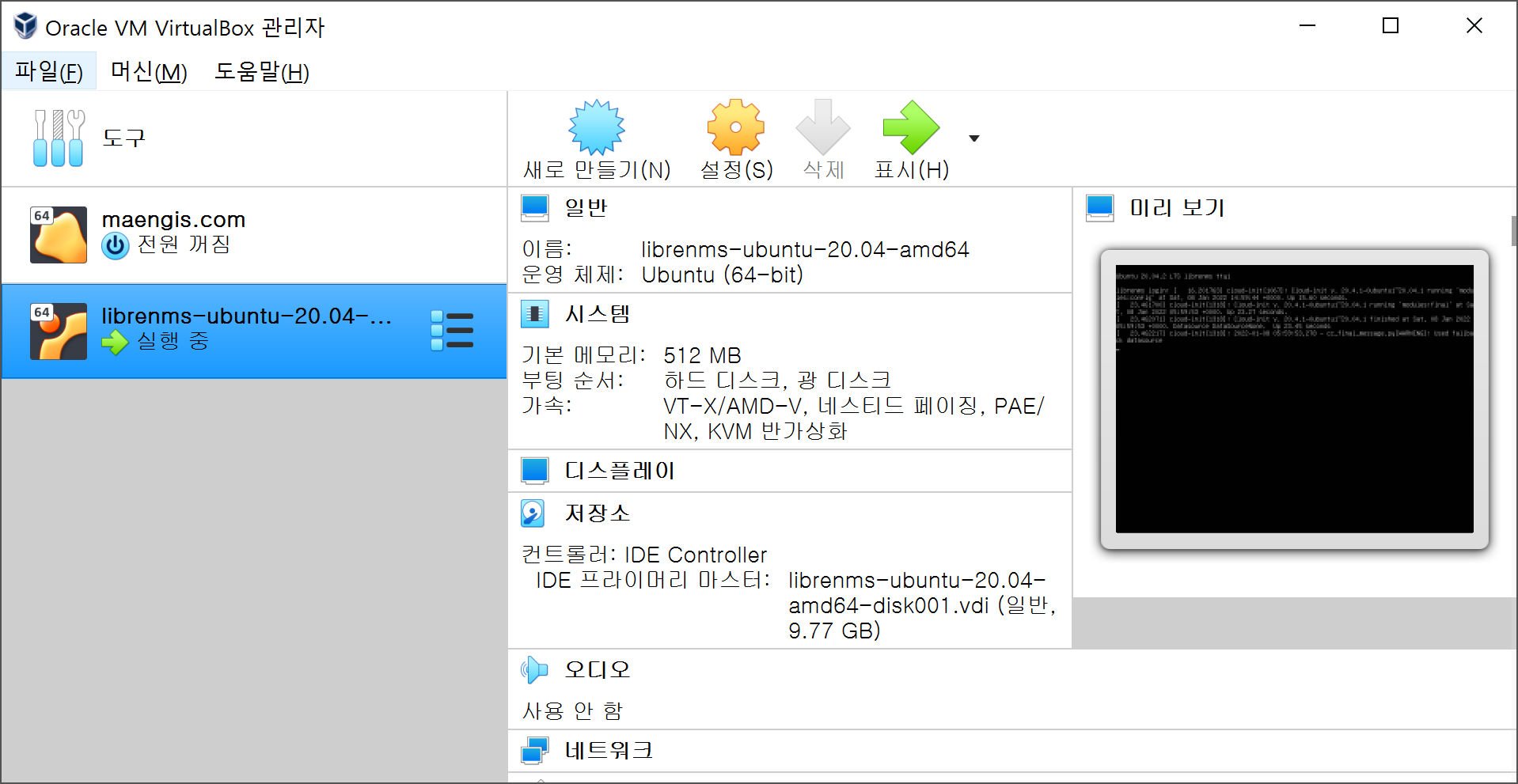 '파일 > 가상 시스템 가져오기'로 해당 파일을 가져오고 실행 시켰다.
